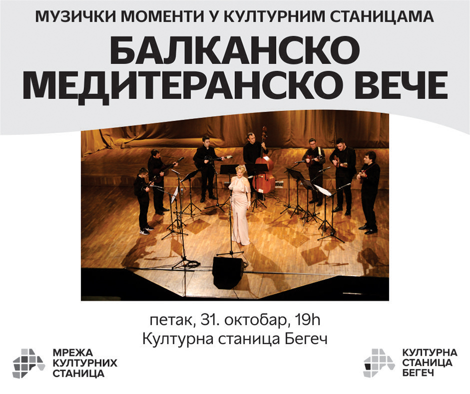 Koncert „Muzički momenti - Balkansko mediteransko veče“, koji predstavlja balkansku i mediteransku muzičku baštinu, biće održan u KS Begeč, u petak, 31. oktobra u 19...